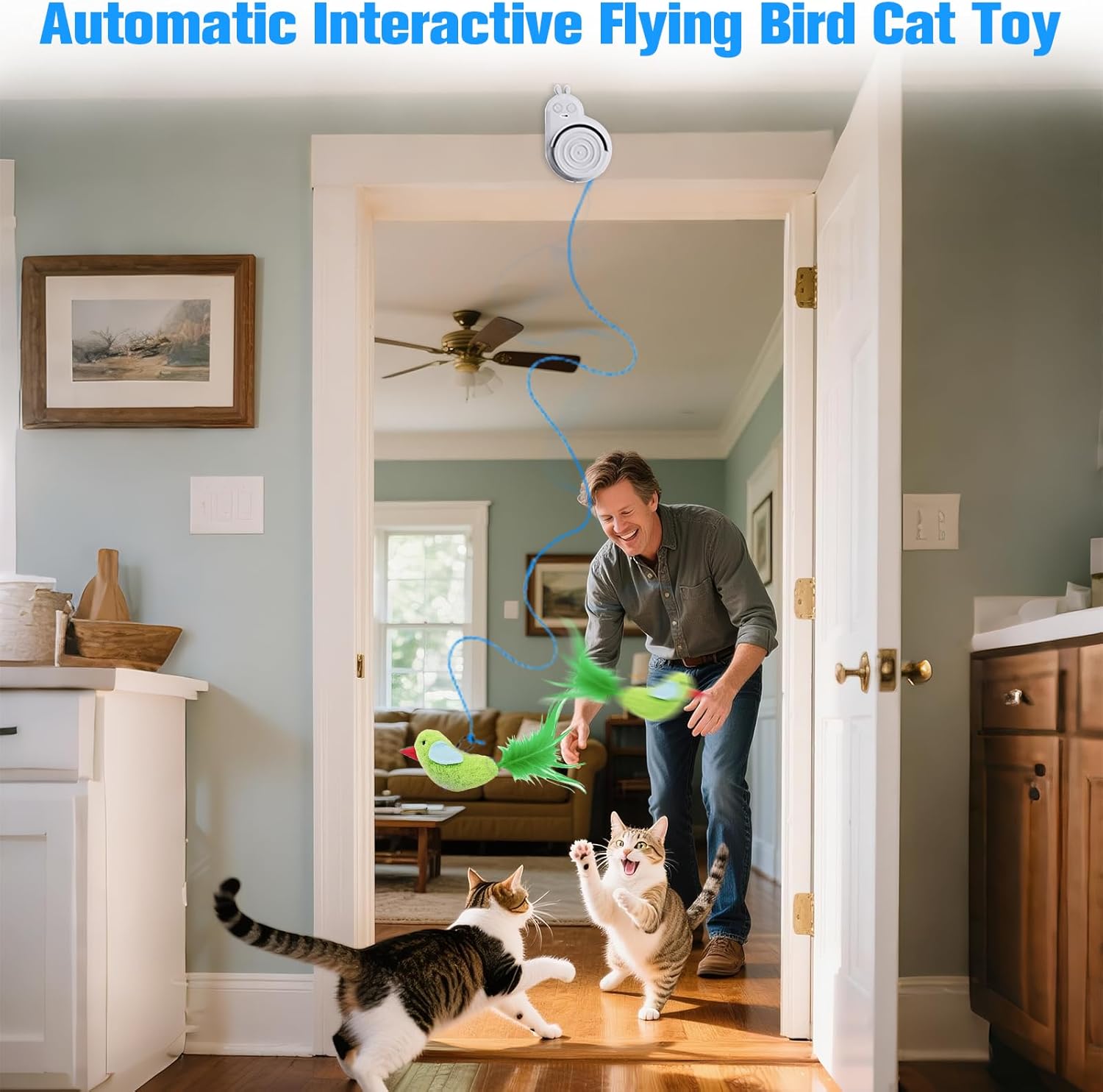 The motor is designed to be quiet so it doesn't disturb your household. However, the fluttering sound of the "bird" wings is intentional—it mimics real prey movement to capture your cat’s attention!