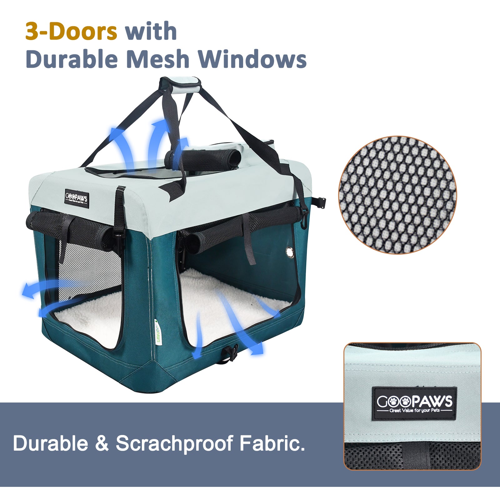 A: While made of durable 600D fabric, soft crates are best for crate-trained pets. Heavy chewers or escape artists may require a metal crate.
