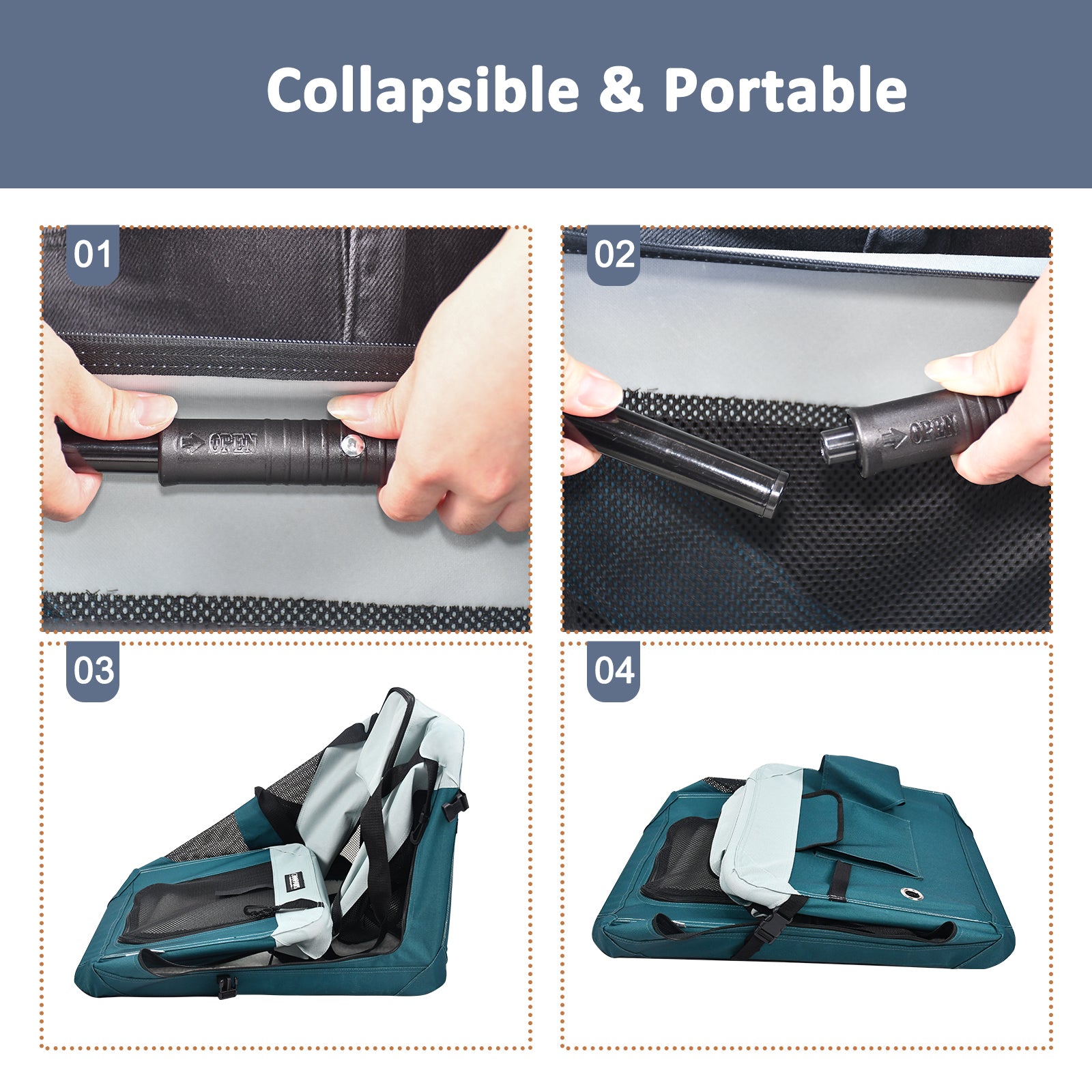 What’s Inside the Box: 1x Collapsible Soft Crate (Teal Blue) 1x Removable & Washable Fleece Mat (For extra comfort) 1x Carrying Strap